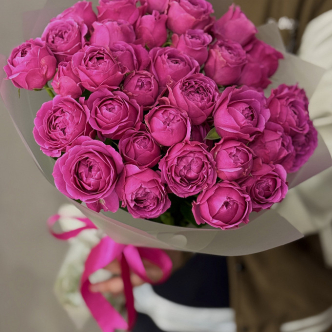 Букет из пионовидных роз в стильной упаковке