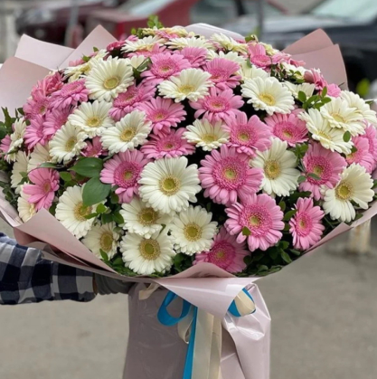 Букет из 101 белой и розовой герберой | Купить в Голд-Косте